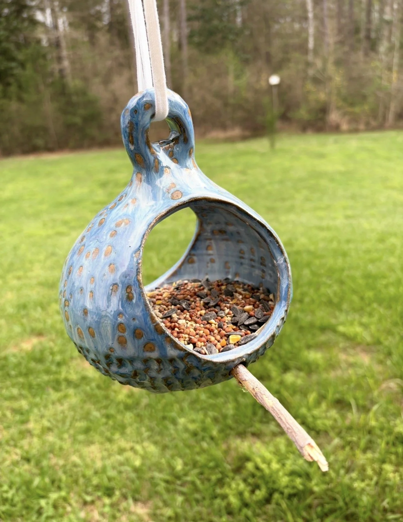 In this two hour class, students will learn how to turn a premade form into a hanging bird feeder from clay with instructor Demi Francois. Students will come back a second day (around 1-2 weeks after class) and glaze their bird feeder after it is fired. Students can come in anytime we are open to glaze their bird feeders. Pieces will be ready for pick up 1-2 weeks after they are glazed. This class will be held on Saturday April 25th 11-1pm. Class is limited to eight participants. Ages 15 and up. All clay and supplies are included.